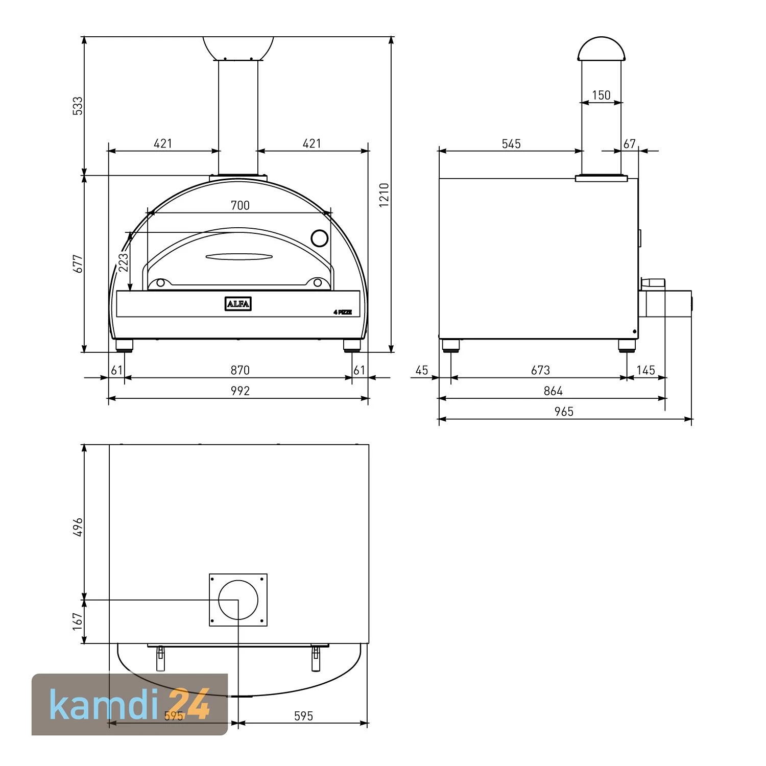 Die Backfläche aus 2,5 cm starken bietet dafür die besten Voraussetzungen: Wie in einem professionellen Holzbackofen wird die Hitze in diesen feuerfesten Steinen gespeichert und an das Backgut abgegeben. In nur 90 Sekunden zaubern Sie mit – wie der Name bereits verrät – vier Pizzen pro Ofenladung. Alternativ können Sie in dem großen Garraum auch bis zu 4 kg Brot pro Backvorgang verarbeiten. Durch die Keramikfaser wird der perfekt gedämmt und isoliert. können Sie auf eine feuerfeste Fläche stellen oder ihn im Rahmen der vorgegebenen Sicherheitsabstände in Ihre Outdoorküche integrieren.