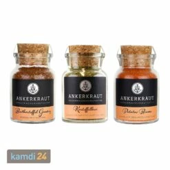 Kartoffeln gerne, aber bitte ein bisschen Abwechslung? Das können Sie haben: Das enthält drei leckere Gewürze, die Ihren Blick auf den beliebten Erdapfel erweitern werden. Das zaubert mit Röstzwiebeln, Kräutern und einem Hauch Pfeffer eine unwiderstehliche Note an alle gebratenen Kartoffeln. Mit der verfeinern Sie nicht nur Püree, sondern auch Kartoffelgratin und deftige Eintöpfe auf Kartoffelbasis. Das Quarkgewürz wiederum dient der Herstellung des gleichnamigen spanischen Gerichtes: Kleine Bratkartoffeln mit einem lecker würzigen Quarkdip, von dem Sie nicht genug bekommen werden!