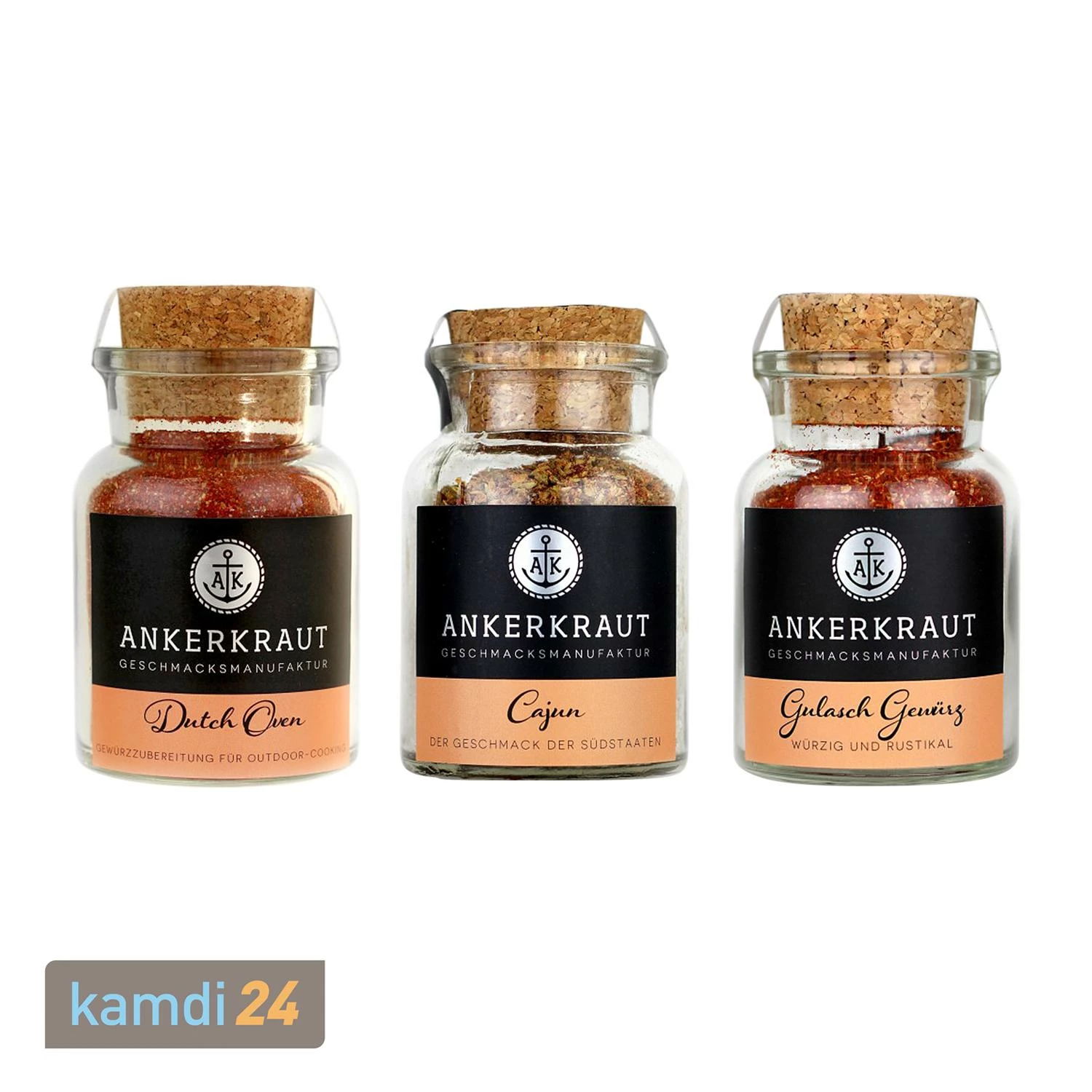 Unter freiem Himmel kochen – das ist die Verbindung von ein bisschen Abenteuer, einer schönen Zeit mit Freunden und vor allem vielen leckeren Gerichten. Das enthält drei hochwertige Mischungen, mit denen Sie im eigenen Garten, auf der Terrasse oder auch beim Camping beeindruckende kulinarische Genüsse zaubern können. Ob ein kreolisches Jambalaya mit , ein klassisches Gulasch mit dem oder eine der zahlreichen weiteren Möglichkeiten aus dem mit dem Ankerkraut : Mit diesem Set von sind Ihnen viele köstliche Stunden beim Outdoor Cooking garantiert.