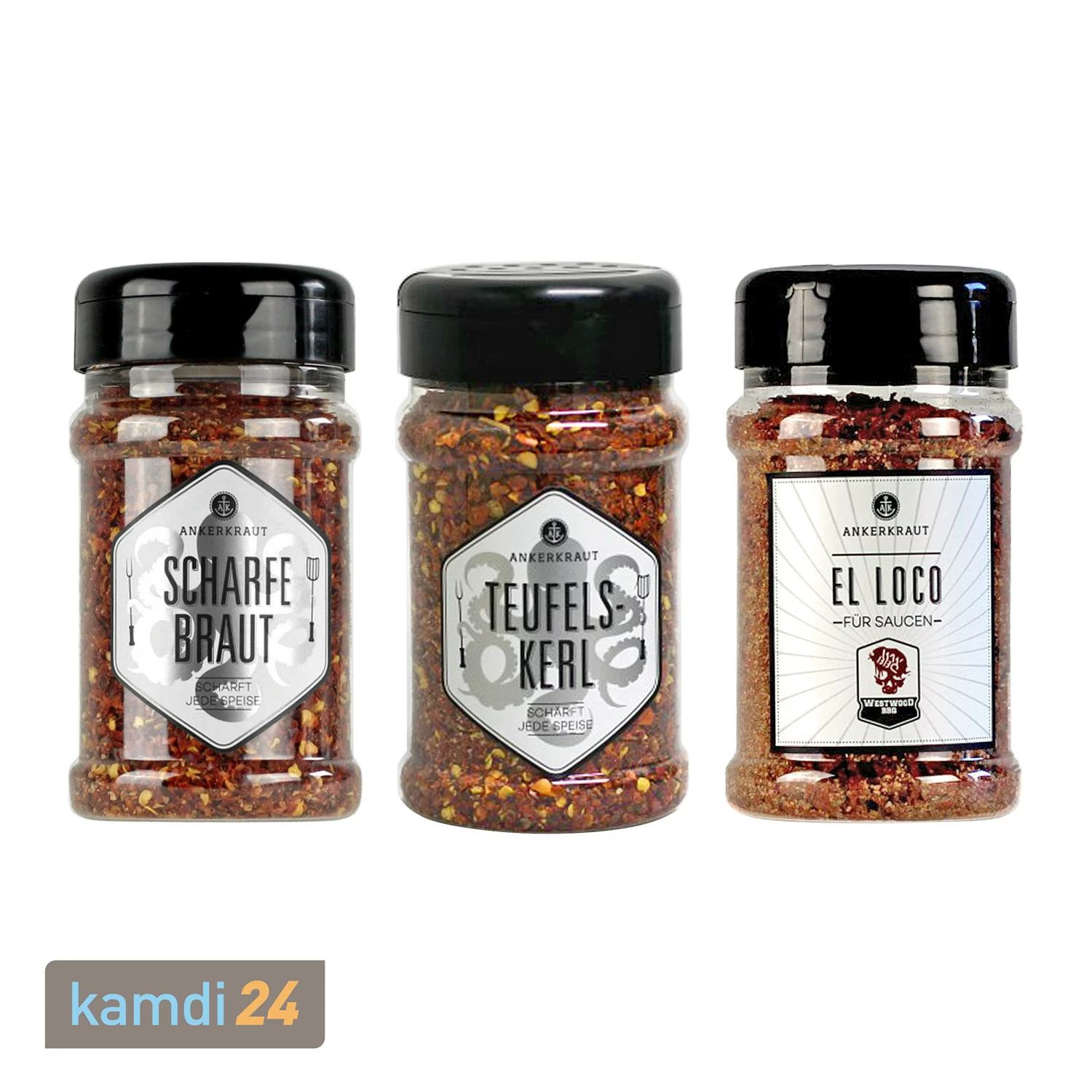 Perfekt zum Nachschärfen bei Tisch – aber auch in der Küche und am Grill: Das enthält drei scharfe , die auch abgehärtete Gaumen herausfordern. Dank der praktischen Aufbewahrung im wiederverschließbaren Streuer kann jeder seinem Geschmack entsprechend dosieren. Wir empfehlen daher, sich langsam an das perfekte Schärfe-Maß heranzutasten.