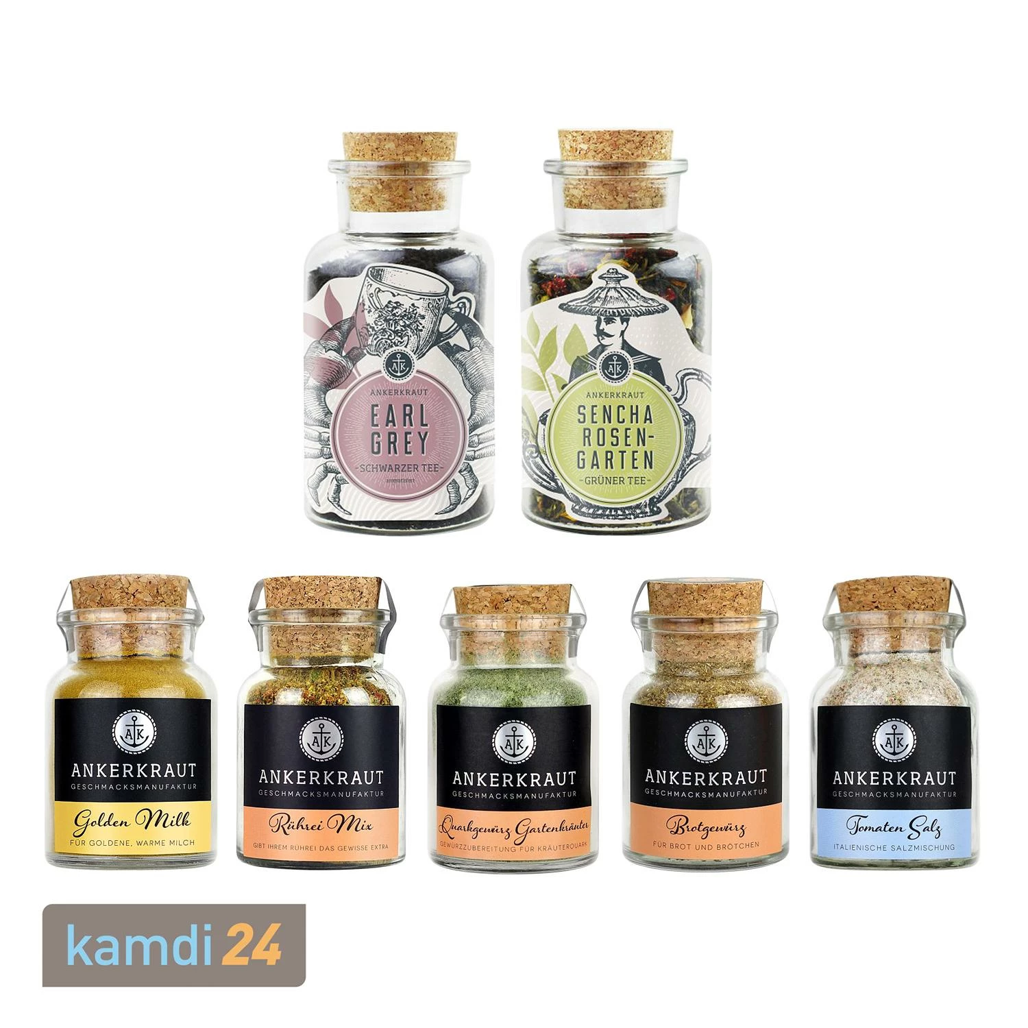 Nicht nur sonntags eine gute Idee: Das enthält zwei Teesorten und fünf , die ein ausgiebiges, abwechslungsreiches Frühstück perfekt machen. Genießen Sie selbstgebackenes Brot mit frisch angerührtem Kräuterquark oder ein Omlette an Salat mit Tomatensalz, dazu schwarzen oder grünen Tee – oder doch lieber eine goldene Milch? Egal, in welchen Kombinationen Sie die einzelnen Komponenten dieses Sets genießen, es wird mit Sicherheit ein gelungener Start in den Tag.