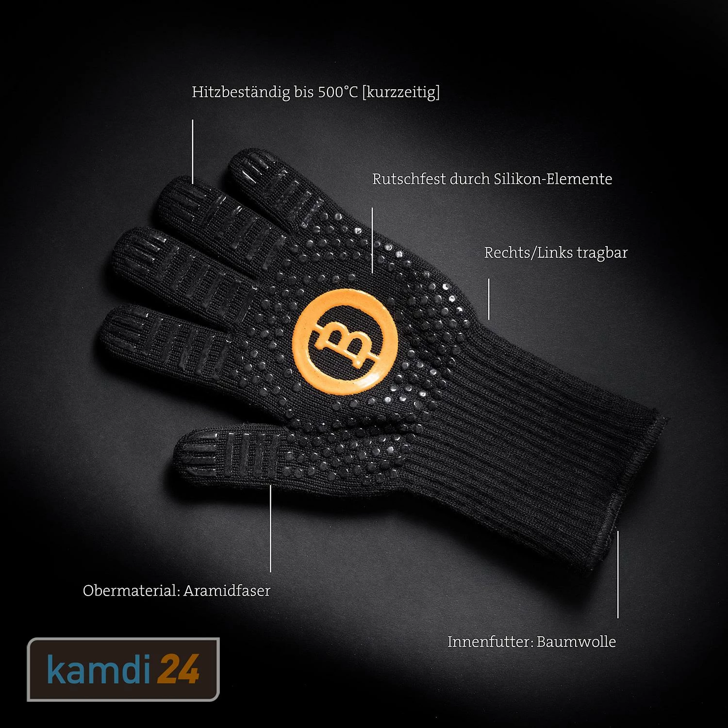 Der von schützt Ihre Hände zuverlässig vor Verbrennungen. Das Obermaterial ist besonders hitzebeständig und eignet sich daher hervorragend für den Umgang mit Ihrem Hochtemperatur-Gasgrill. Die Silikonelemente auf dem Handschuh isolieren zusätztlich und sorgen für einen guten Griff.