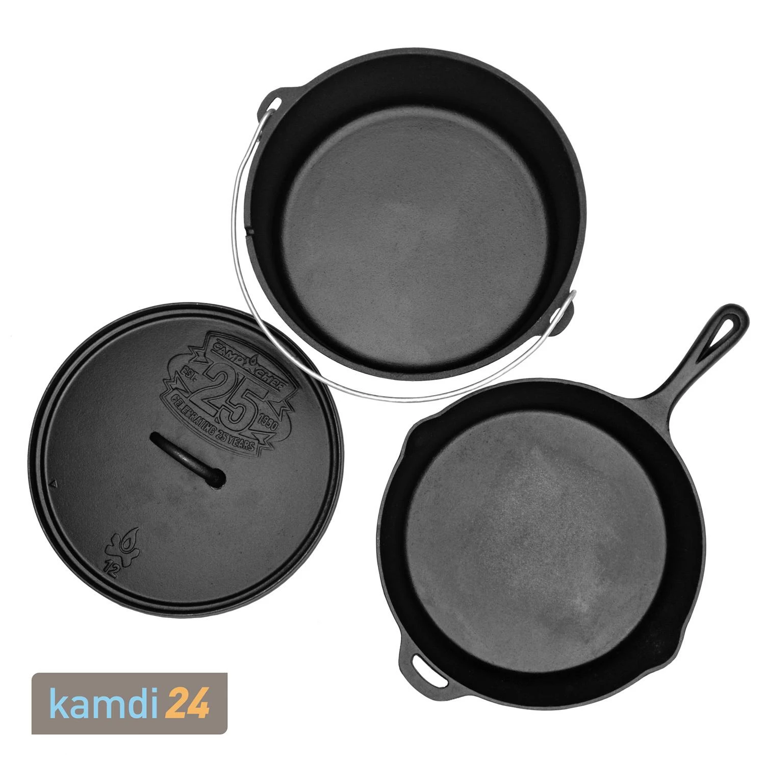 Doch auch wenn Camp Chef Sie noch nicht seit 25 Jahren begleitet, ist das Set die ideale Möglichkeit, die Vorzüge des auszuprobieren. In dem dicht schließenden gusseisernen Topf können Sie mit schnellen Garzeiten nahezu zubereiten. Die Pfanne eignet sich perfekt zum Braten auf offener Glut. Im Set sind Topf und Pfanne also unschlagbar, um Ihre Freunde oder Familie bei der nächsten Gartenparty mit einem leckeren Essen zu überraschen.