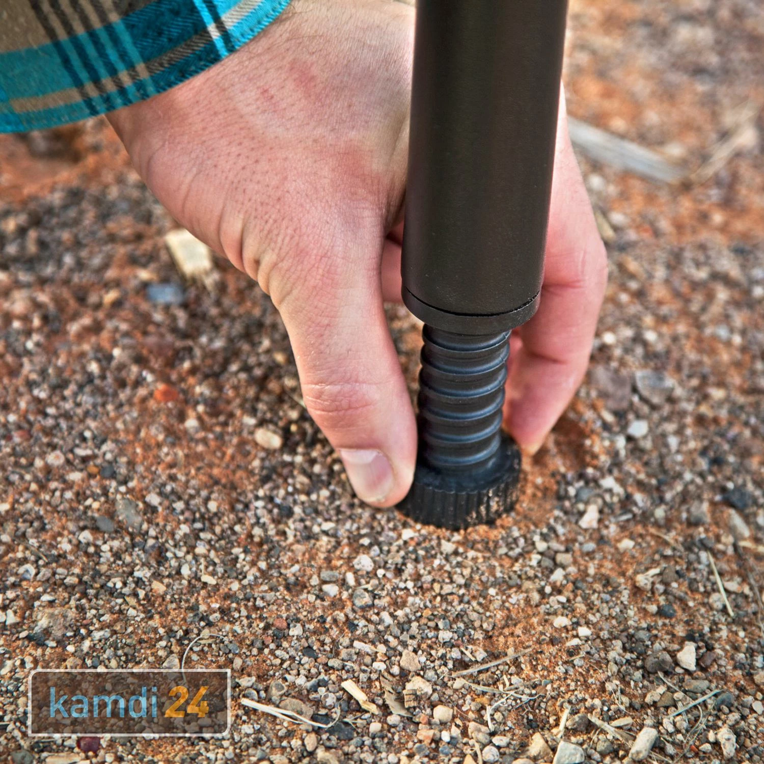Mit den von sind Sie in der Lage, Ihre Camp Chef Kochstelle oder Ihren Dutch Oven Tisch auch auf unebenen Böden ohne zu kippeln aufzustellen. Die Füße sind kompatibel mit Campingkochern bzw. Tischen mit runden Beinen und werden einfach von unten aufgesteckt. Über Drehbewegungen lassen sich die Füße kinderleicht auf die entsprechende Höhe justieren und gleichen dadurch Unebenheiten von maximal 6 cm aus.
