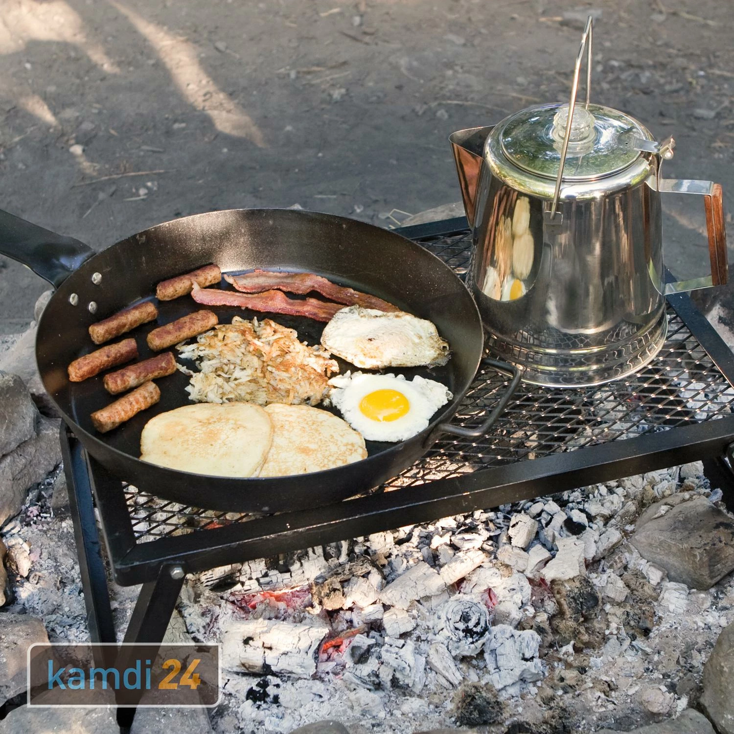 Kochen über einer Feuerstelle war noch nie so bequem möglich wie mit dem von . Auf einer Fläche von ca. finden Bratwürstchen und Grillgemüse ebenso Platz, wie eine oder ein , um auch Outdoor nicht auf frisch gebrühten Kaffee verzichten zu müssen.