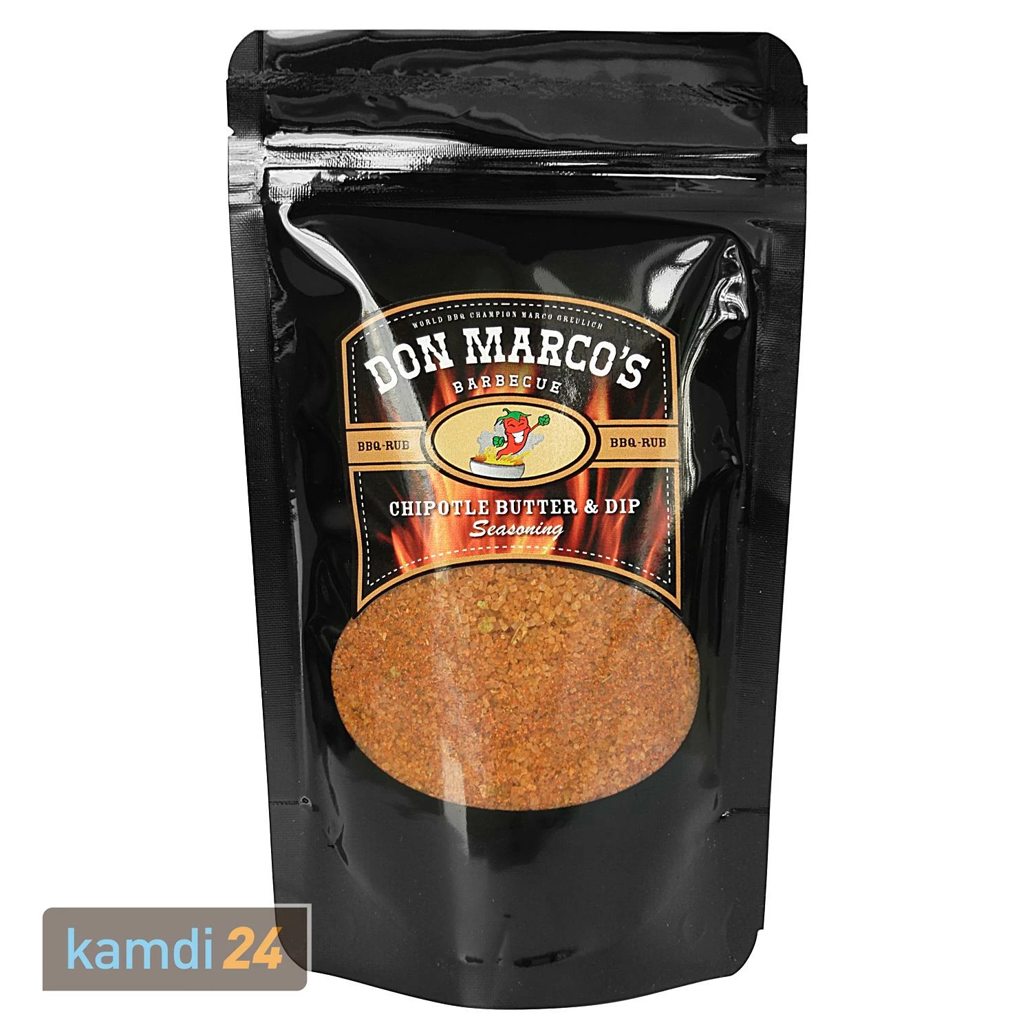 20 g Don Marco´s , 250 g weiche Butter und 1 EL Olivenöl schaumig rühren und möglichst über Nacht kaltstellen. Die Butter entweder direkt zum Grillgut servieren oder Brot damit bestreichen und dieses rösten.