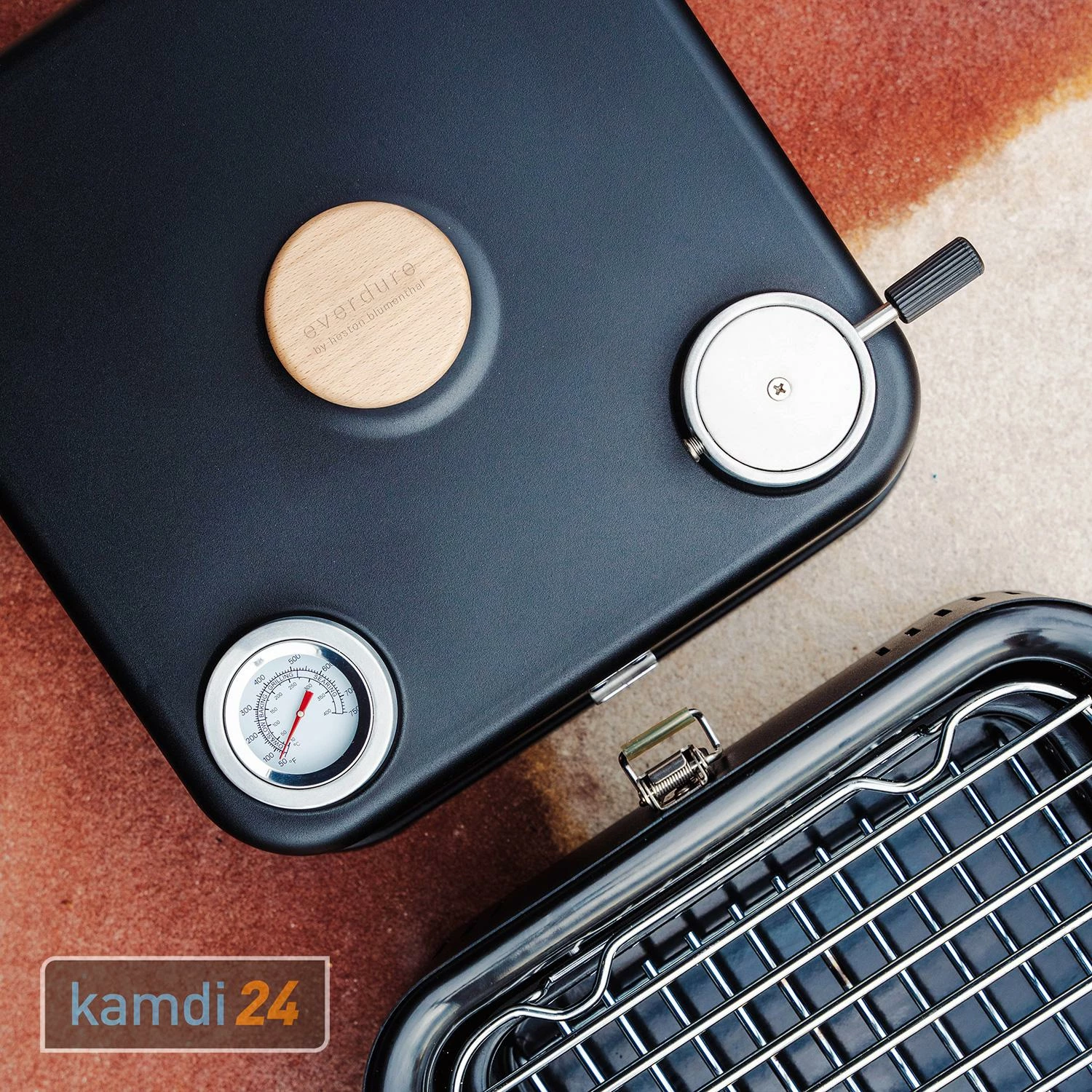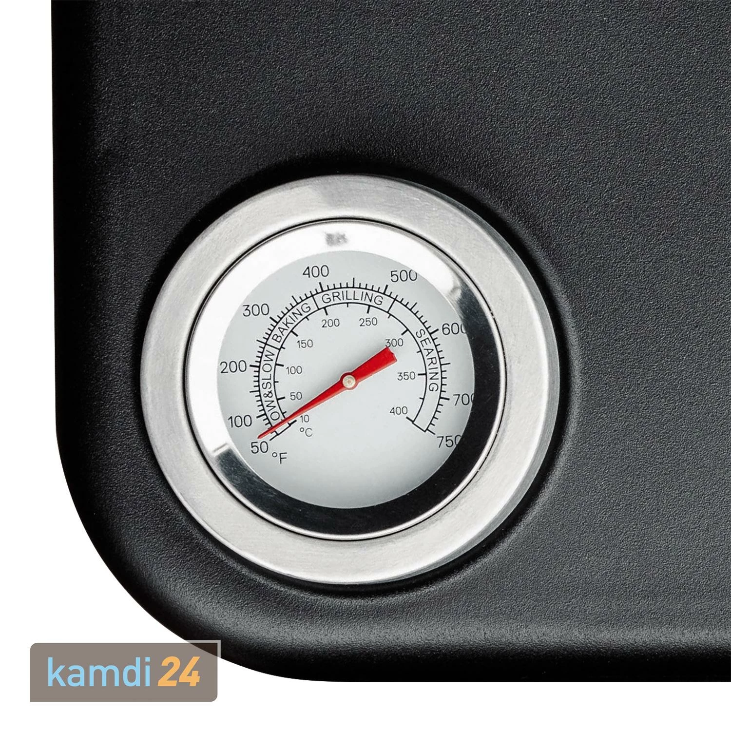 überzeugt nicht nur mit seinem schicken Retro-Design, sondern auch mit vielerlei Funktionen. So besitzt der mobile Grill ein hochwertiges Deckelthermometer zur Überwachung der Grilltemperatur sowie einen Schieber, mit dem Sie die Luftzufuhr und die Hitze während des Grillvorgangs kontrollieren können.