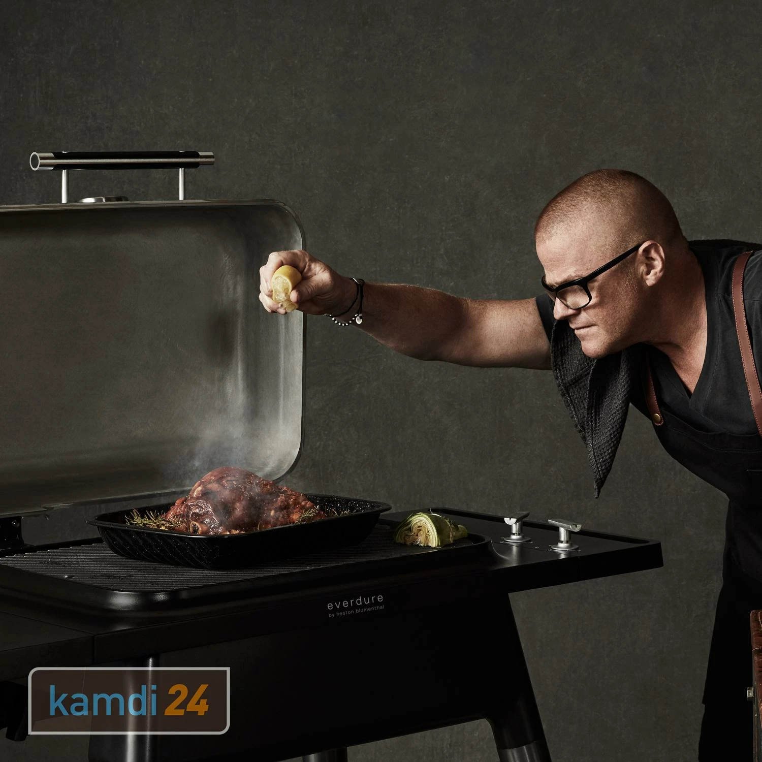 In geöffnetem Zustand lässt sich auf klassisch direkt grillen. Der bis zu 10 mm starke Aluminium-Deckel ermöglicht aber auch das indirekte Grillen in exzellenter Weise. Die abgerundeten Ecken des Deckels lassen die Konvektionshitze im geschlossenen optimal zirkulieren, sodass der gleiche Effekt erzielt wird wie in einem leistungsstarken Umluftofen. Dabei sorgt eine umlaufende Lippe am Deckelrand dafür, dass die heiße Luft nicht durch den Spalt zwischen Deckel und Grillwanne entweichen kann. Über das Deckelthermometer behalten Sie die Temperatur im Garraum immer im Auge.