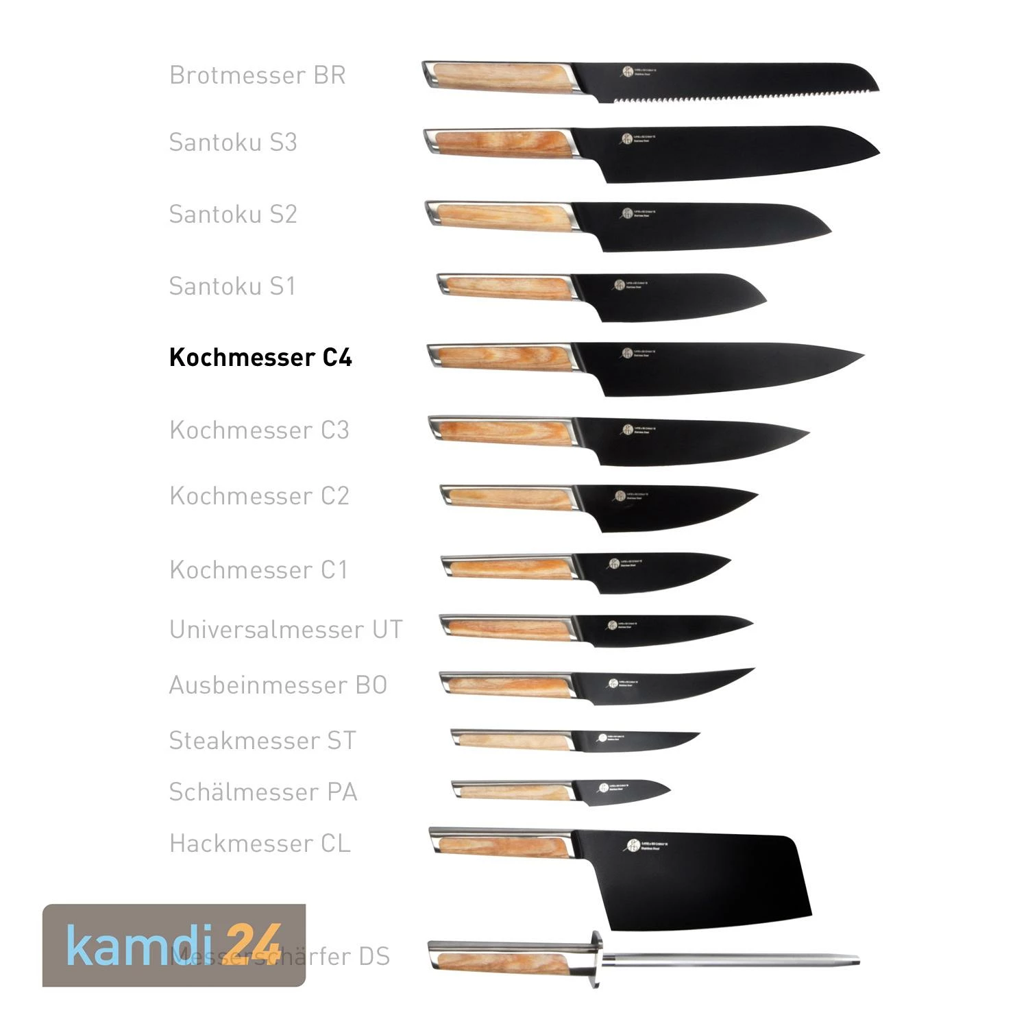 Dank der breit aufgestellten Produktpalette der haben Sie für jede Arbeit in der Küche oder am Grill das perfekte parat: und Santoku stehen in verschiedenen Größen bereit, zudem sind Steakmesser, Hackmesser, Ausbeinmesser, Universalmesser, Schälmesser sowie Brotmesser in exzellenter Ti-Serien-Qualität erhältlich. Für dauerhaft scharfe Klingen über viele Jahre hinweg sorgt der im passenden Stil.