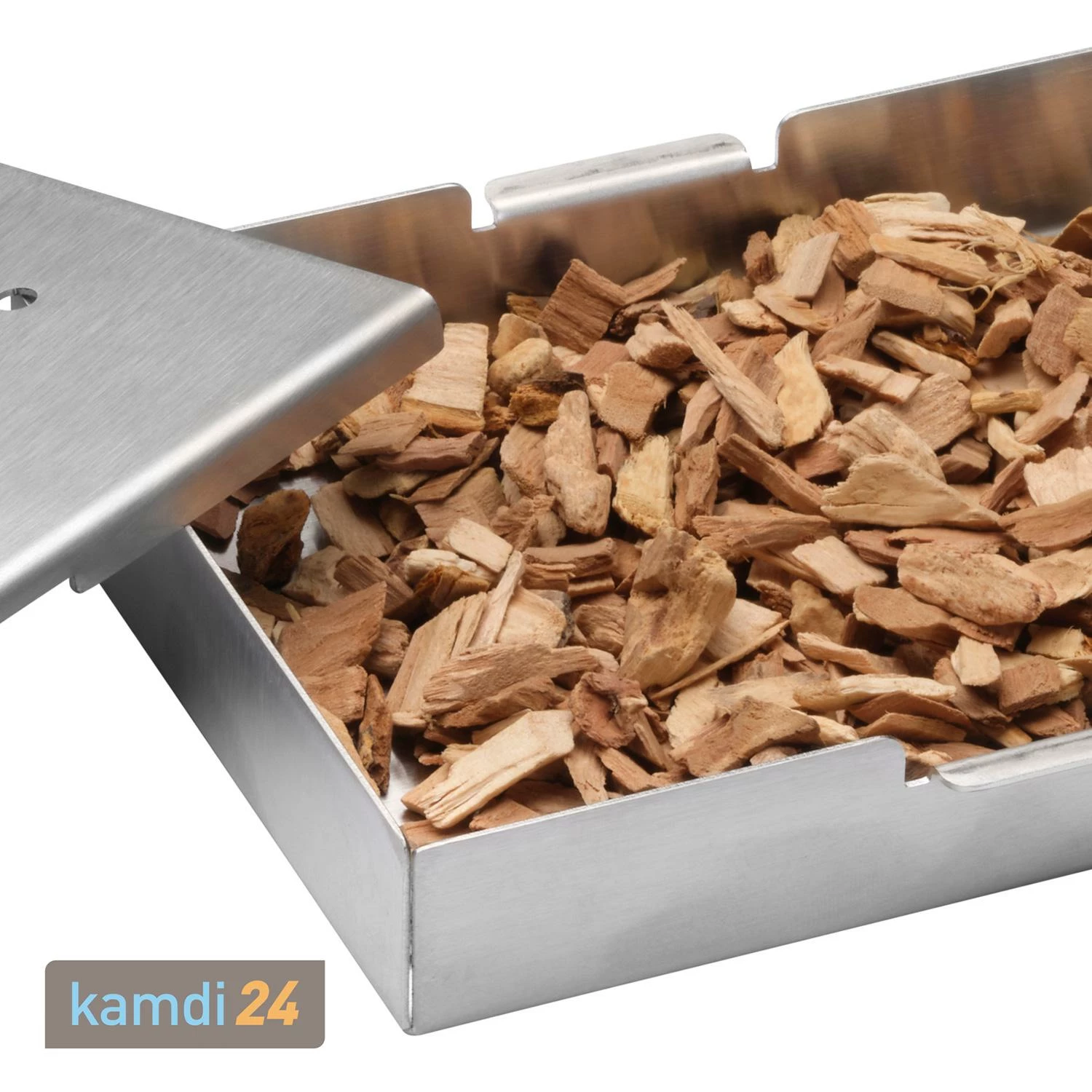 Für die Smokerbox können Sie Räucherspäne in verschiedenen Geschmacksrichtungen kaufen – diese und weiteres finden Sie in unserem !
