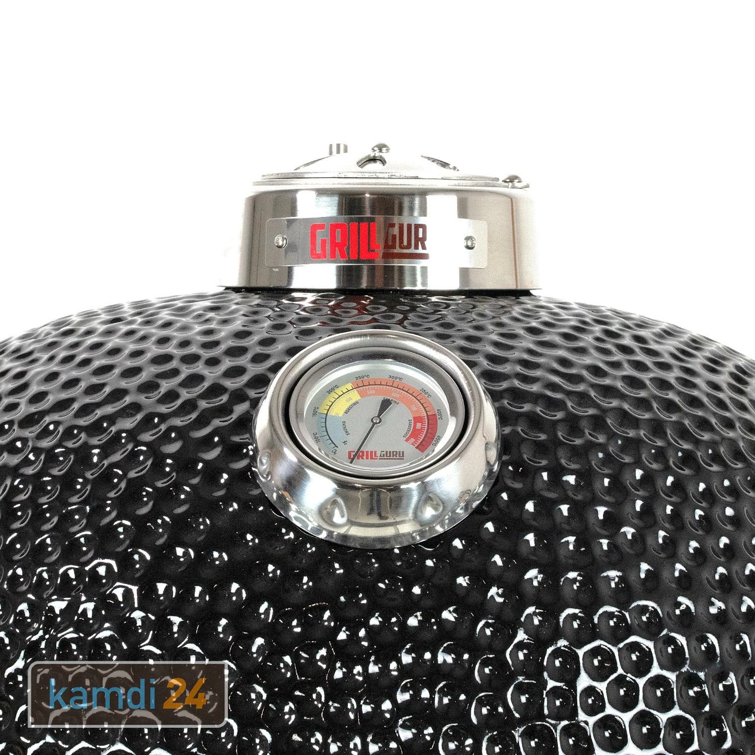 Die hochwertige Kuppel aus Keramik ist besonders beständig gegen sehr hohe Temperaturen. Das integrierte Thermometer zeigt zuverlässig die Garraumtemperatur an.