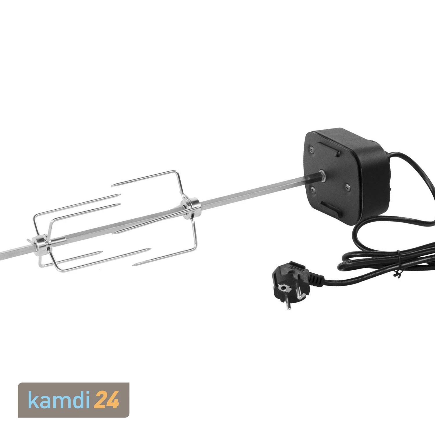 Der ist eine nützliche Ergänzung für Ihre Mars und Geras von . Zwei Fleischklammern mit je vier Spießen fest, damit es beim Drehen von allen Seiten gleichmäßig gar wird. Der Elektromotor garantiert eine des Spießes, Sie können ihn aber auch manuell drehen.
