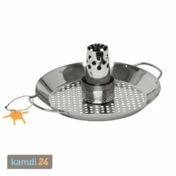 Nutzen Sie für die Zubereitung eines saftigen Hähnchens auf Ihrem den von . Sie können die abnehmbare Halterung zur Aromatisierung des Geflügels mit Bier, Wein, Fruchtsäften oder anderen Flüssigkeiten füllen. Die gelochte Pfanne des Hähnchenbräters eignet sich hervorragend zum Garen von Gemüse, das Sie zum Hähnchen servieren können.