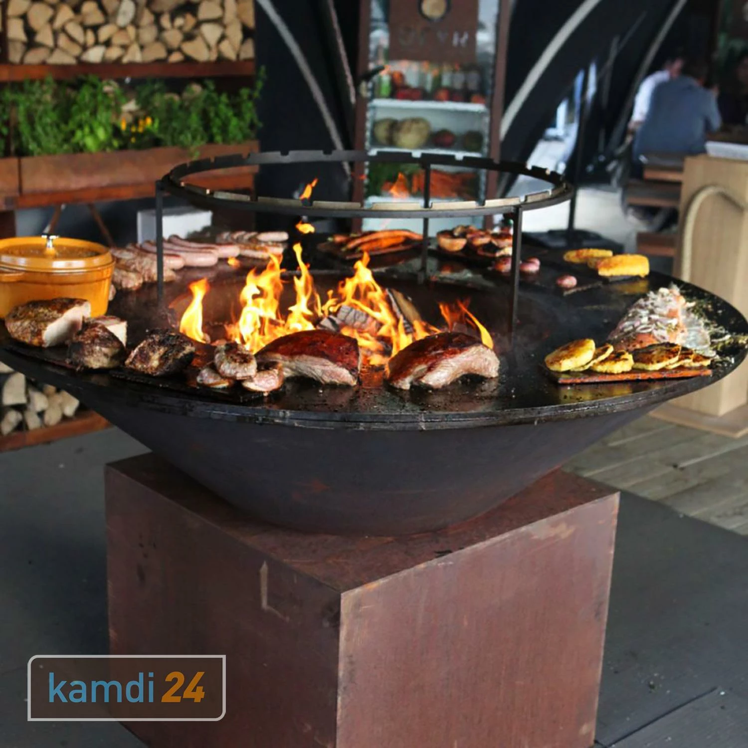 Das von ist ideal für alle Grillenthusiasten! Die mit Holzgriff können senkrecht in das Feuer gesteckt oder waagerecht auf den angebracht werden. Dafür gibt es mehrere Aussparungen, wodurch Sie entweder nur einen oder alle Spieße auf einmal verwenden können. Achten Sie bei sehr großem Grillgut auf die gleichmäßige Verteilung des Gewichts. Damit die Speisen nicht direkt über dem Feuer liegen, enthält das Set ein . Mit über 20 cm Höhe ist genügend Platz, um Feuerholz nachzulegen. Neben dem Grillen mit den Spießen, kann die für die Zubereitung weiterer Lebensmittel genutzt werden.