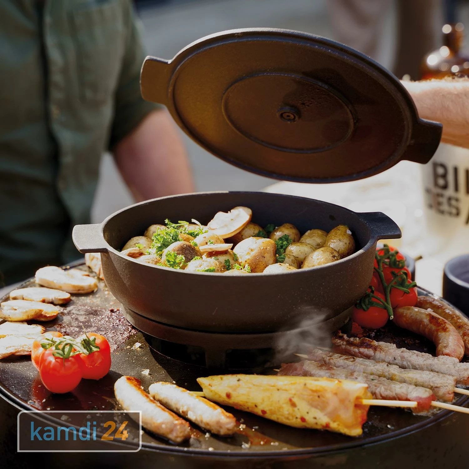 Das von ist das ideale Zubehör für den . Es besteht aus hochwertigen, langlebigen und ist vielseitig zu verwenden. Im können Sie beispielsweise Gemüse oder ein herzhaftes Käsefondue zubereiten, während auf dem Grill das Fleisch brutzelt. Der beiliegende dient als Unterlage für den Topf, kann aber auch ohne zum direkten Grillen kleiner Speisen genutzt werden. Das Set umfasst außerdem zum Entnehmen der Gerichte oder um am Ende die Essensreste aus dem Topf zu kratzen.