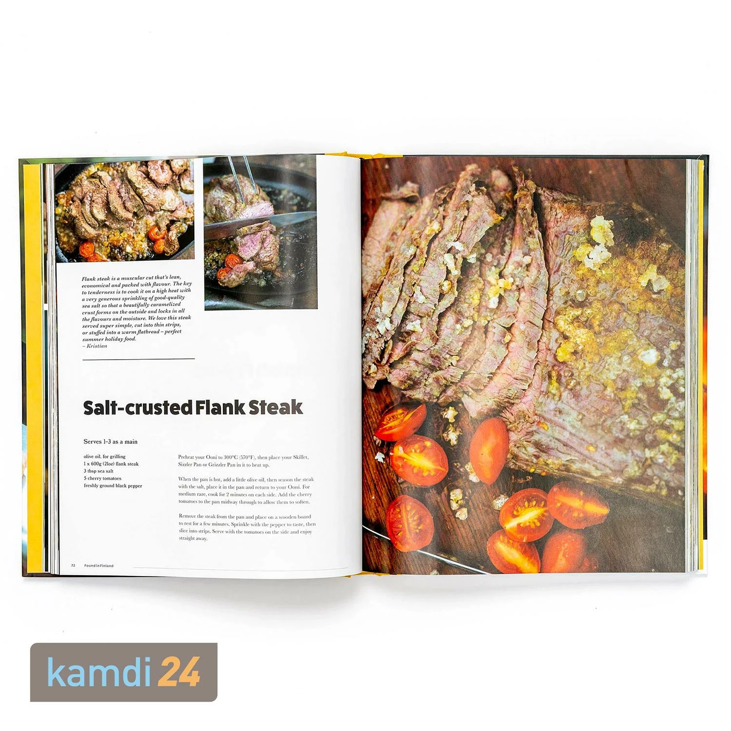 Das von wurde von der Gründer*innen der Firma verfasst und beinhaltet Informationen zur Geschichte von Ooni sowie viele leckere Rezepte für das optimale Kochen unter freiem Himmel.