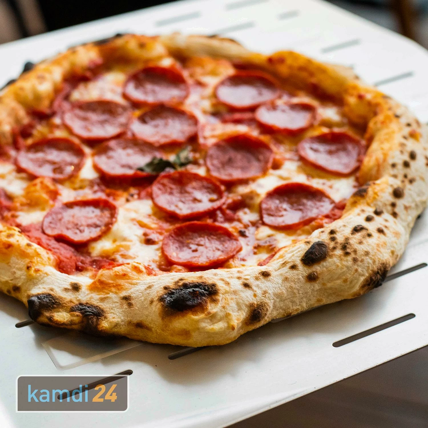 Mit dem perforierten aus von erhalten Sie einen hochwertigen und leichten Schieber für Ihren Pizzaofen. Mit diesem Accessoire können Sie die Pizza sicher und mühelos einschieben, drehen und aus dem Ofen heraus holen. Dank des abgeschrägten Schaufelrands gleitet die Pizza leicht in den Pizzaofen. Die Perforation der Schieber lässt den Dampf schnell entweichen und sorgt dafür, dass überschüssiges Mehl abfällt und verbrannte Stellen an der Pizza vermieden werden.
