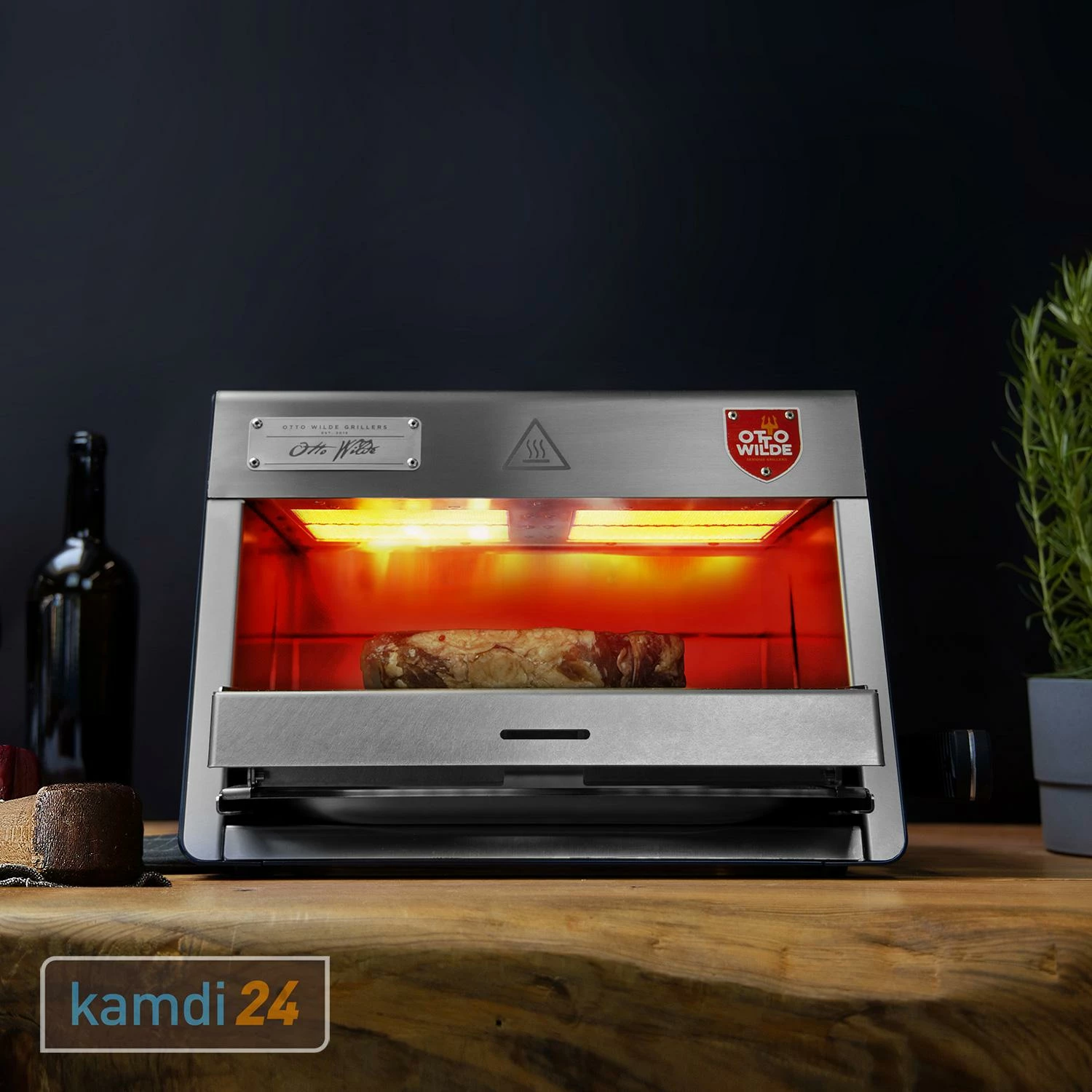 Durch seine zwei Infrarot-Gasbrenner erreicht der Brennertemperaturen von bis zu 900 °C. Die Hitze trifft von oben auf das Grillgut und sorgt für die Maillard-Reaktion, welche die Kruste goldbraun und kross und das Innere zartrosa und saftig werden lässt. Die hohen Temperaturen sorgen für kurze Garzeiten. Die beiden Brenner sind stufenlos und individuell regelbar, was eine präzise Einstellung der Grilltemperatur ermöglicht.