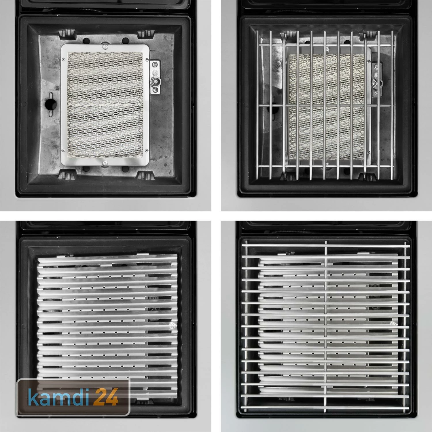 - Gusshalterung (Cooking-Zone) 3 Stufen; Rost (Blazing-Zone) 2 Stufen, jeweils höhenverstellbar
