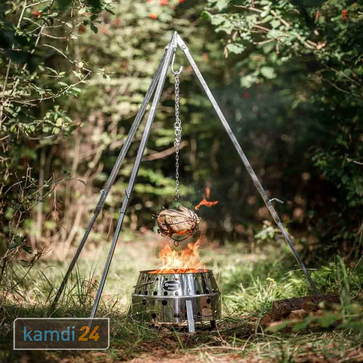 Schauen Sie sich im von auch das von Petromax an, das Sie unter anderem zum Befestigen des Geflügel-Grillkorbs über dem Feuer verwenden können.