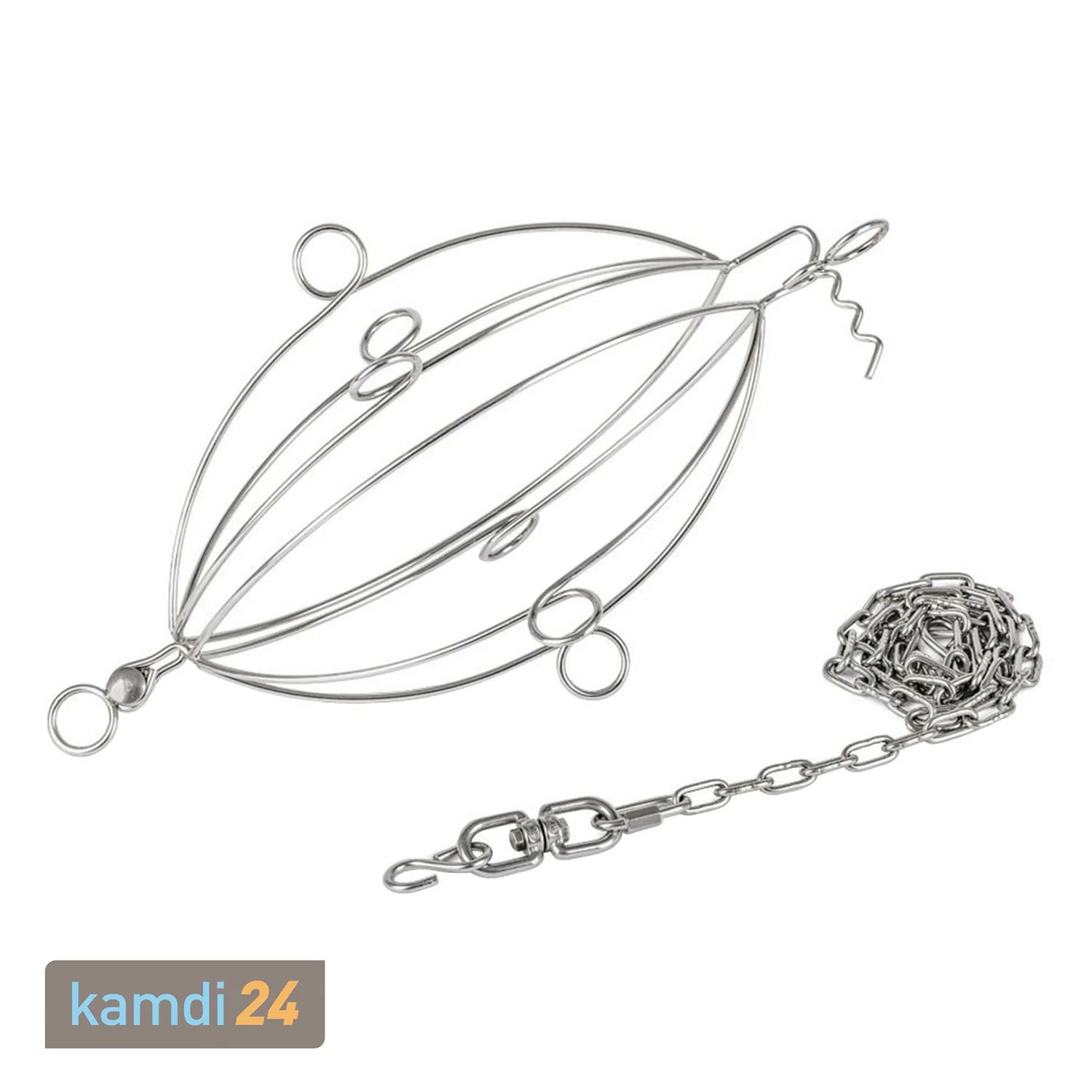 Den Inhalt für den können Sie durch fest und sicher einspannen. Das Ganze wird dann direkt über dem offenen Feuer gegart. Der sich an der Kette befindliche Drehwirbel sorgt für einund die Gliederkette, in die Sie den Grillkorb einhängen, ermöglichen eine .