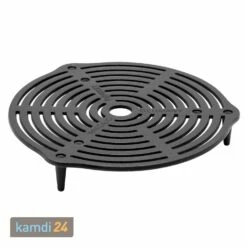 Der Gussrost steht auf und kann somit auch über glühenden Kohlen als normaler verwendet werden. Die hervorragende Wärmeleitfähigkeit des Gusseisens sorgt hierbei für ein tolles Branding! Sechs Aussparungen an der Oberseite machen den Rost , sowohl in Verbindung mit weiteren großen Stapelrosten gr-s30 als auch mit dem . So wird Grillen und Dünsten in mehreren Ebenen möglich, ohne dass die oberen Roste wegrutschen können.