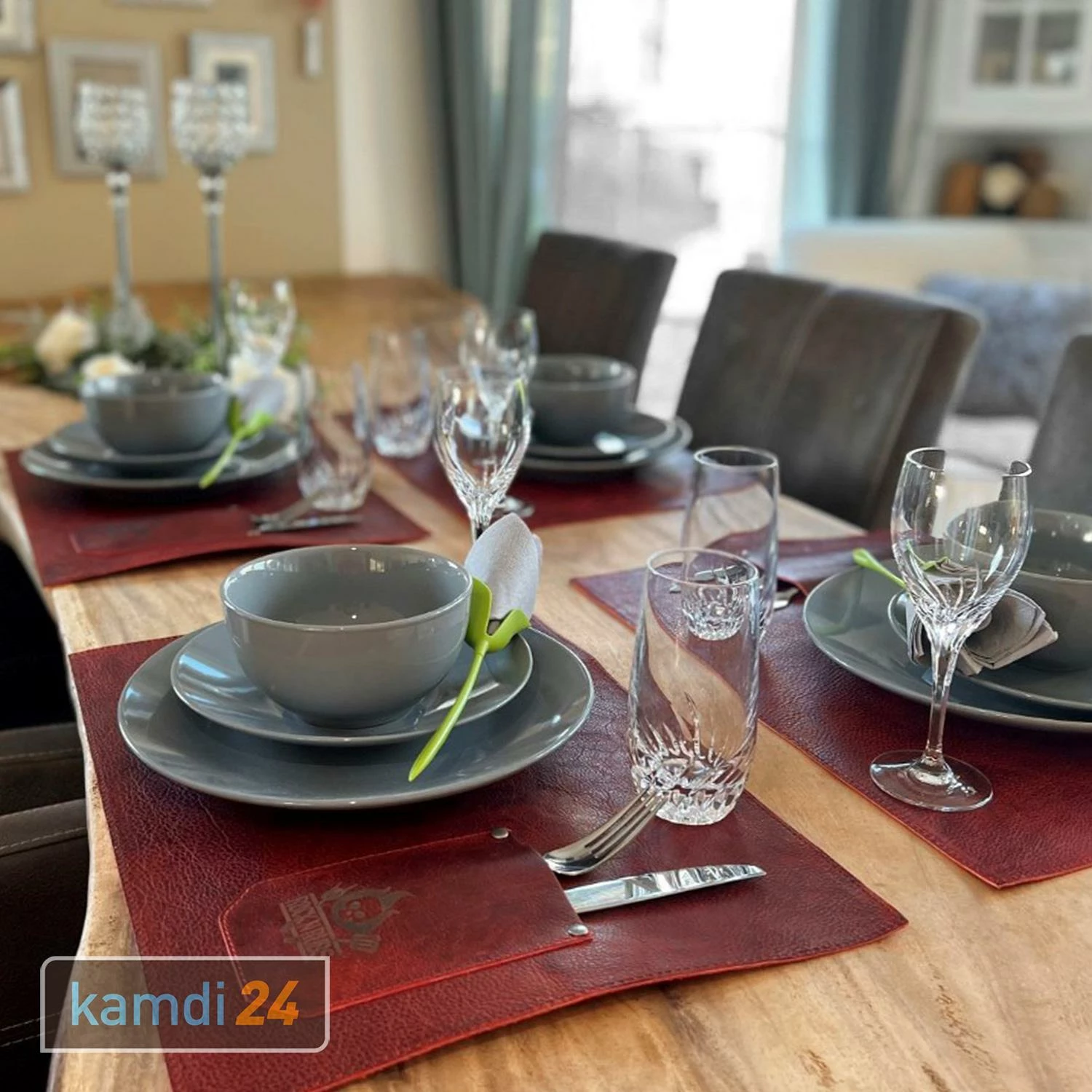 Die Tisch-Unterleger sind aus echtem Rindsleder gefertigt und daher Naturprodukte. Es kann zu leichten Unregelmäßigkeiten und Farbabweichungen in der Lederoberfläche kommen, was aber keinen Mangel darstellt.