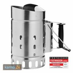 Der von gewährleistet ein bequemes, gleichmäßiges und schnelles Entzünden von oder . Dank des füllen Sie die glühenden Kohlen sicher in den Grill. Der große Griff mit garantiert einen festen Halt; der sorgt für ein kontrolliertes Ausschütten der heißen Kohlen.