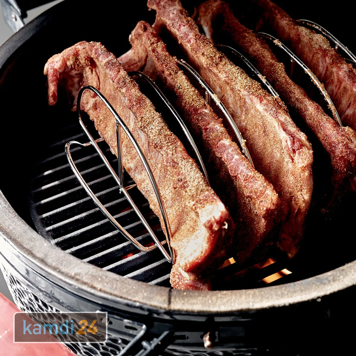 Der Rippchenhalter eignet sich für die Keramikgrills und von The Bastard.