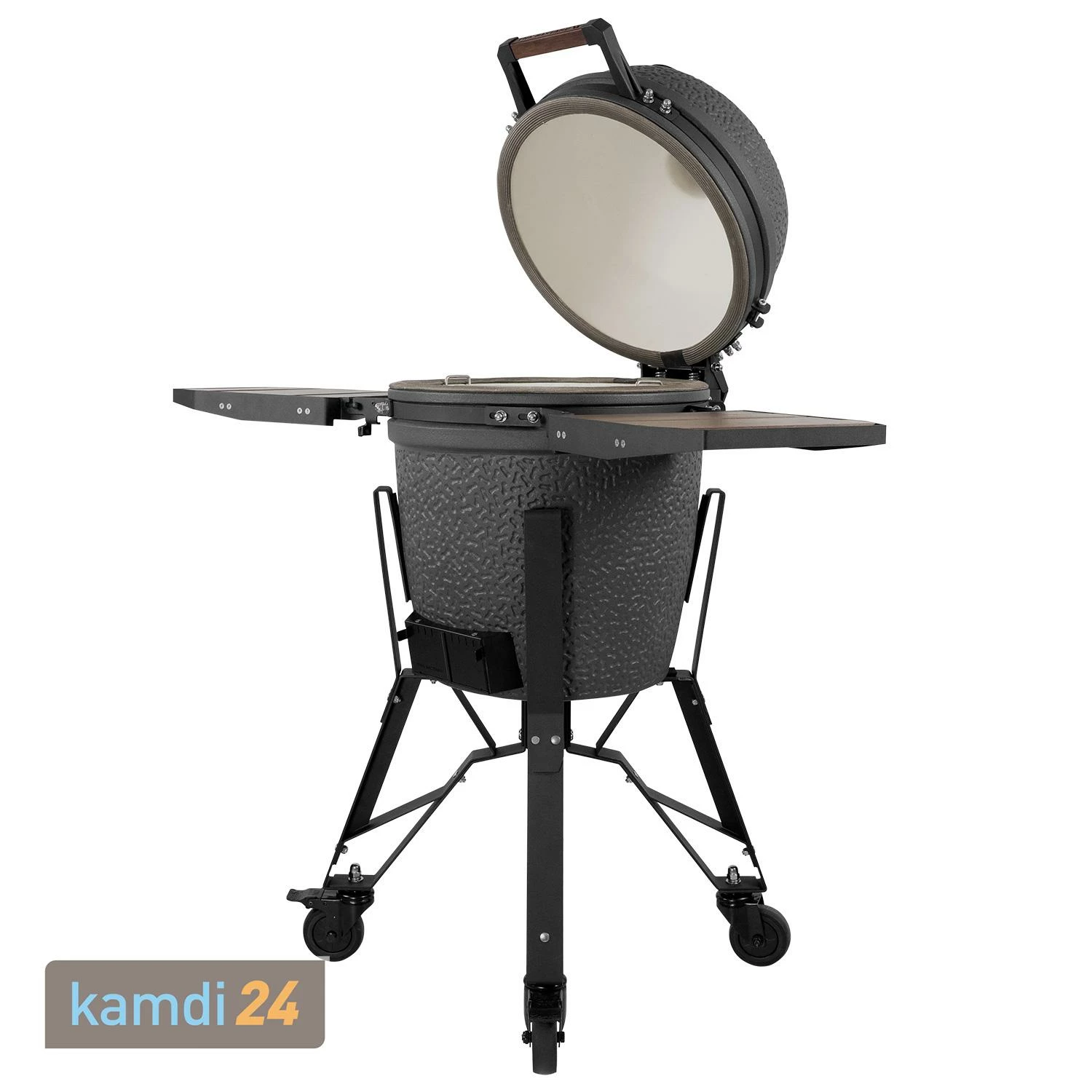 Der Kamado von The Bastard ist mit aus Bambus-Holz ausgestattet, welche nun in einen eingefasst sind. Diese bieten die Möglichkeit Grillzubehör wie Gewürze, Grillbesteck oder Geschirr bequem abzustellen. Werden die Seitentische nicht benötigt, können diese ganz einfach zugeklappt werden. Das verbesserte Tischscharnier verhindert obendrein, dass beim Zusammenklappen Kratzer in der Keramik entstehen.