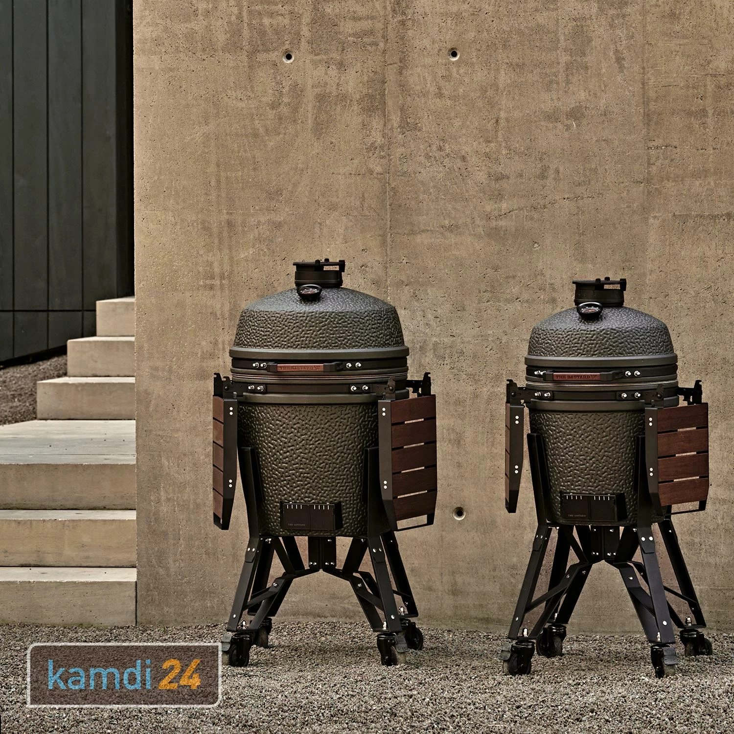 Standardmäßig ist der Grill mit zwei schwarz beschichteten Wärmedeflektoren und dem dazu passenden Stahlgestell ausgestattet. Die halbmondförmigen Wärmeplatten ermöglichen das indirekte Grillen mit dem Keramikgrill. Zudem bietet das Gestell zahlreiche weitere Einsatzmöglichkeiten mit dem passenden Zubehör von The Bastard, wie beispielsweise dem Wok oder weiteren Grillrosten.
