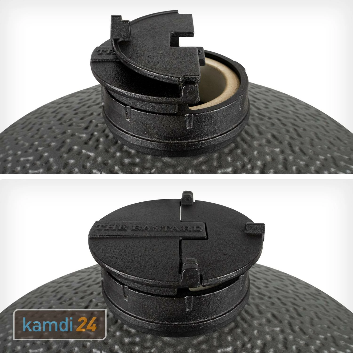 Dank der , die um 180 Grad gedreht werden kann, steuerst du zielgerichtet die gewünschte Grilltemperatur. Dabei bleibt die Einstellung auch beim Öffnen des Keramikgrills immer in der richtigen Position.