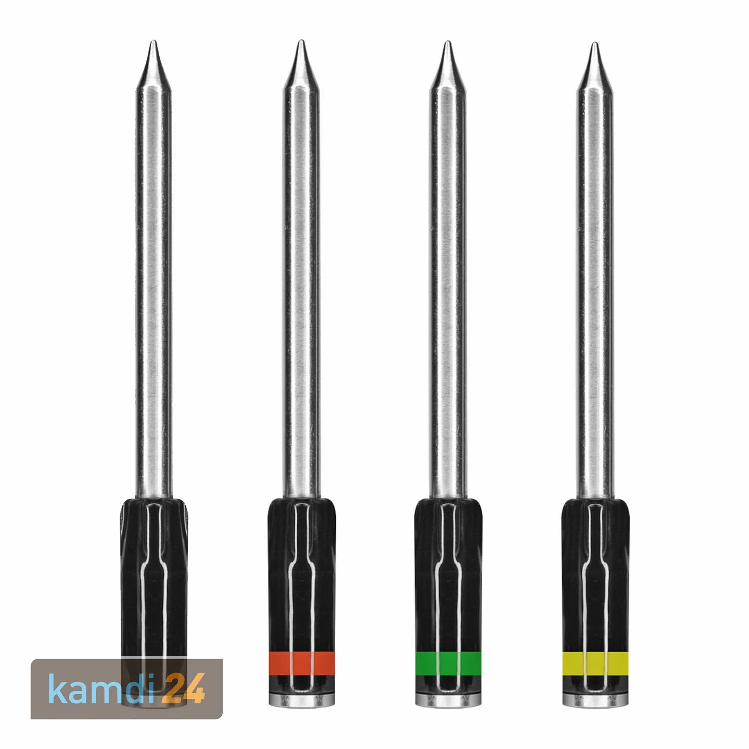 Hierbei handelt es sich um einen Einzelstick ohne Ladegerät, welcher als Ergänzung zu den dient. Mithilfe der App können acht Temperaturfühler gleichzeitig ausgelesen werden. In größeren Runden kann so jedem Gast ein eigener Temperaturfühler zugewiesen werden. Die Griffe der Temperaturfühler sind wahlweise komplett in Schwarz oder in Schwarz mit roter, gelber oder grüner Markierung gestaltet. Treffen Sie Ihre Auswahl über das Varianten-Menü.