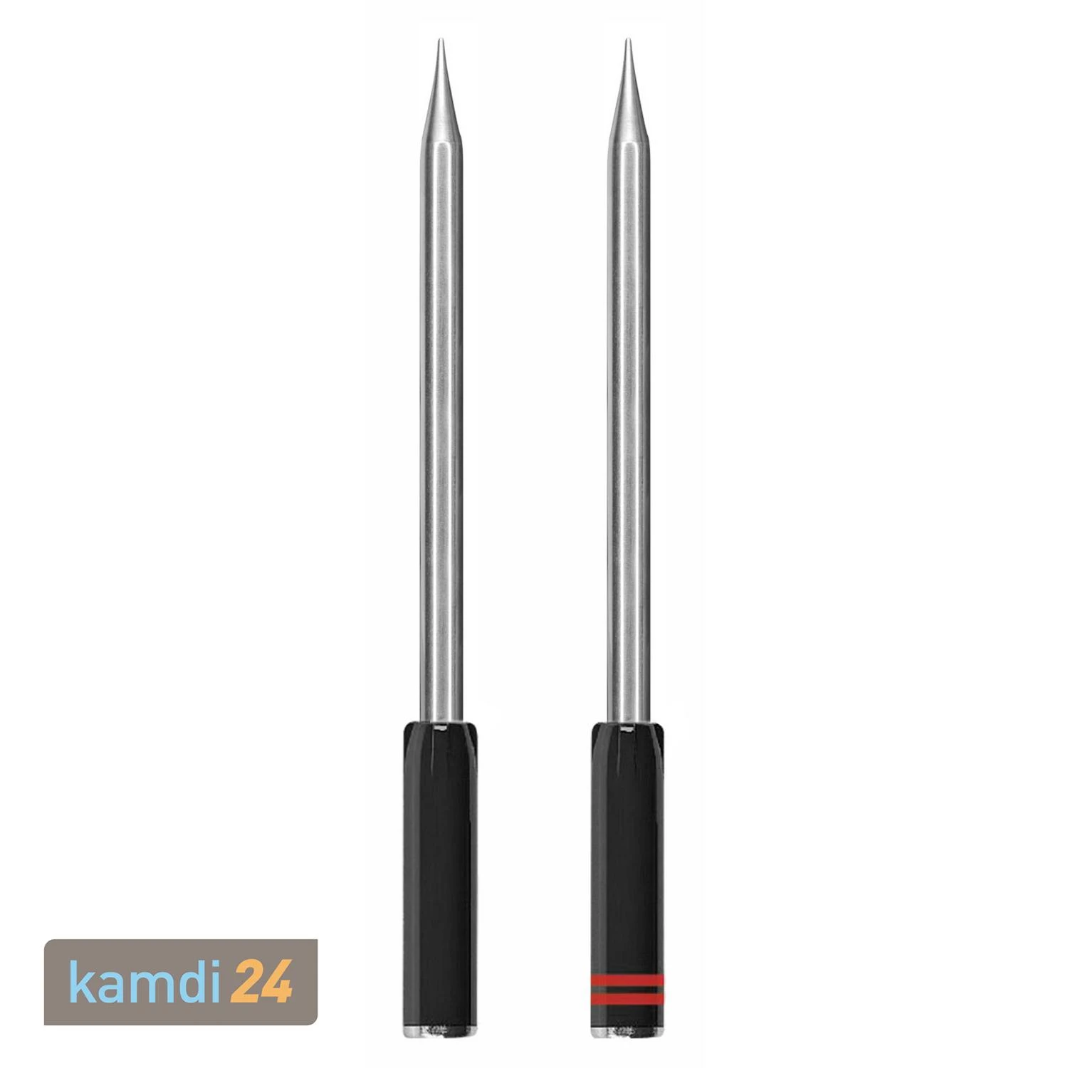 Der Edelstahlfühler von The MeatStick ist wasserfest, spülmaschinengeeignet und kann sogar in der Fritteuse verwendet werden. Auch zum Sous-Vide-Garen oder Dampfgaren eignet er sich hervorragend. Der Außentemperaturfühler im Griff des MeatSticks hält Temperaturen bis 300 °C stand.