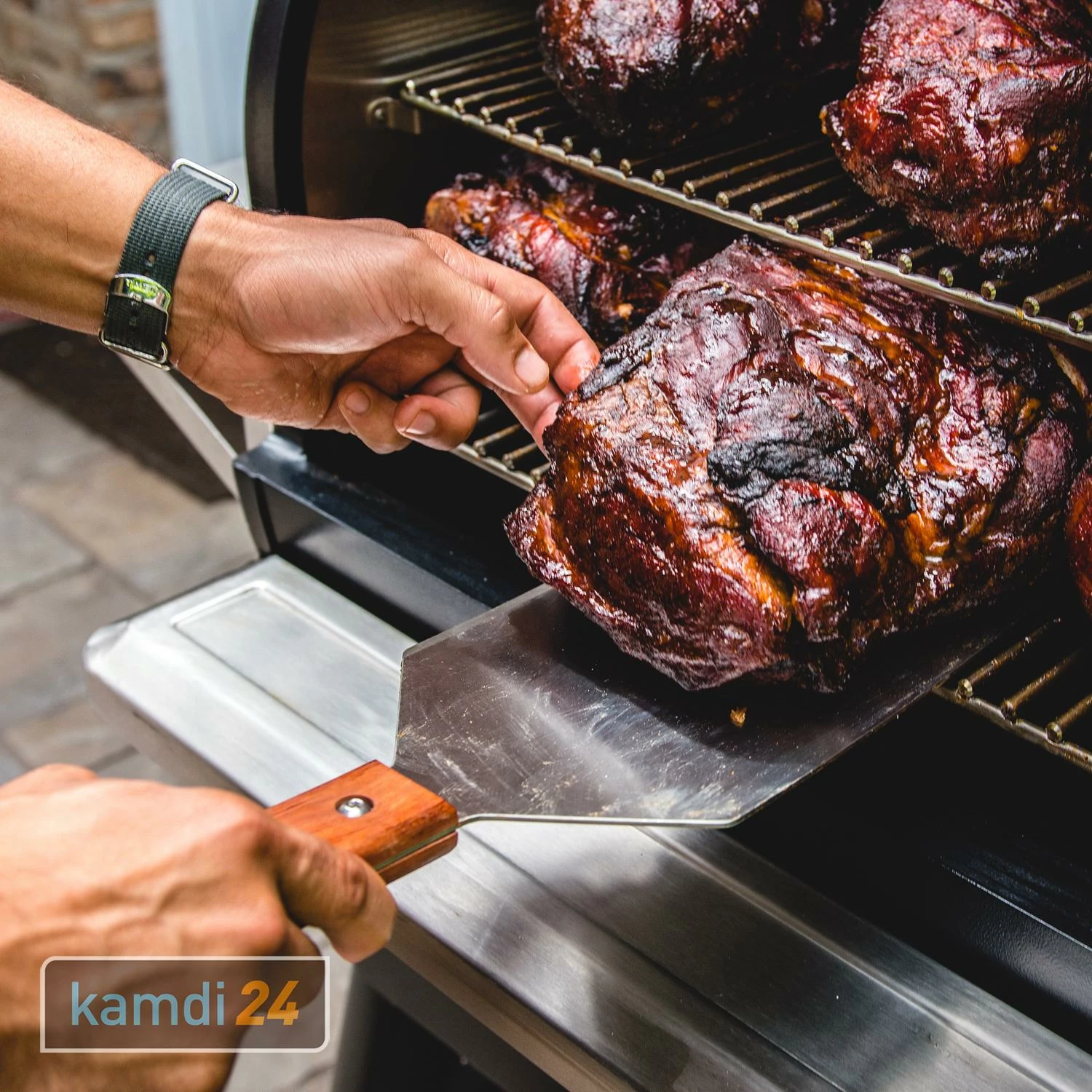 Dank seiner extragroßen Hebefläche drehen Sie mit dem von auch größeres Grillgut bequem. Er ist aus Edelstahl gefertigt und verfügt über einen Griff aus Palisanderholz. Am Ende des Griffes befindet sich ein Loch für eine Aufhängung, dadurch ist er bestens aufgeräumt, wenn Sie ihn nicht benötigen.