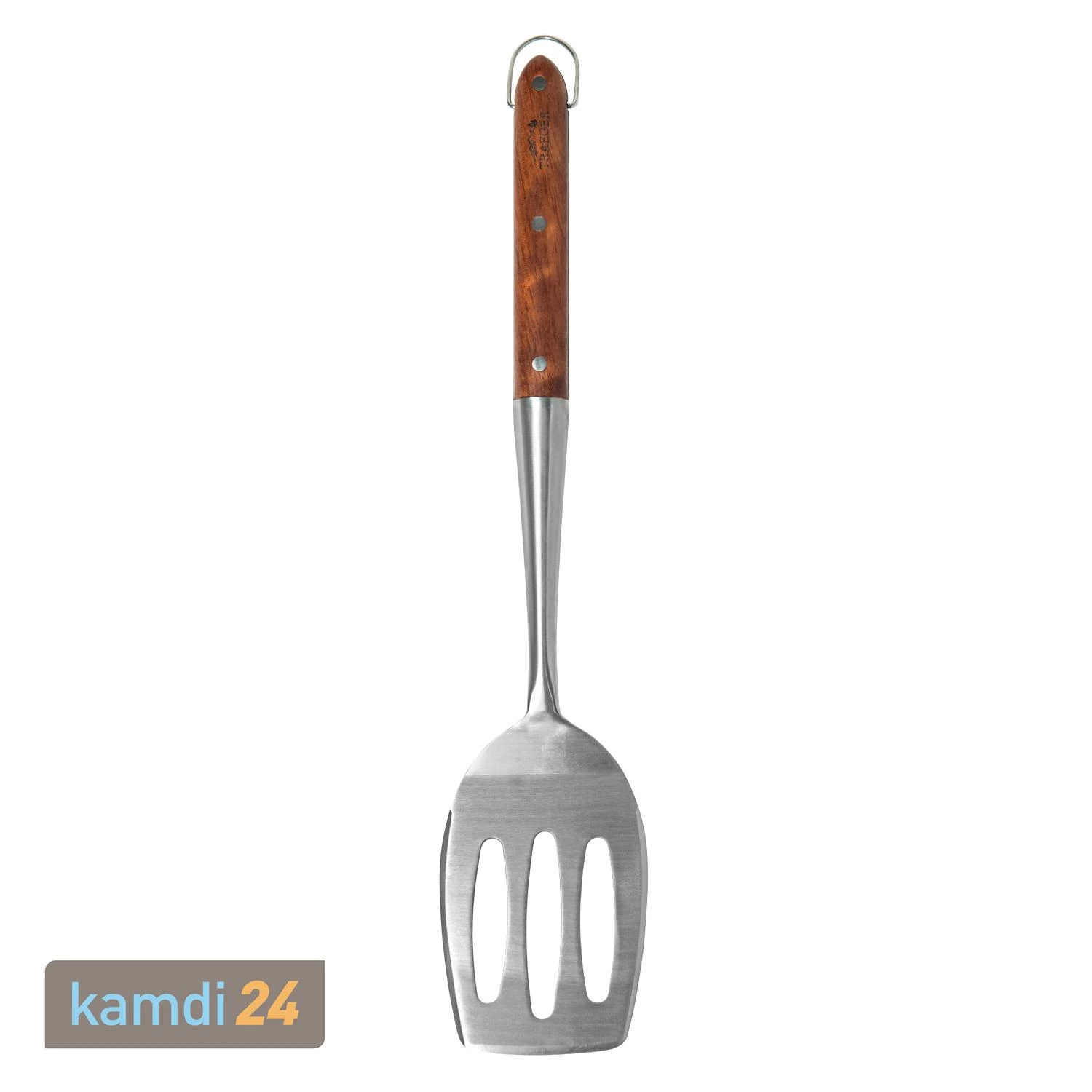 Ob Burger oder Steak – mit dem von können Sie alles von einer anderen Seite betrachten! Aus Edelstahl gefertigt und mit einem Griff aus Palisanderholz ist der Wender nicht nur praktisch, sondern auch schön anzusehen. Und wenn Sie ihn mal nicht benötigen, hängen Sie ihn einfach an dem kleinen Haken am Griffende auf.