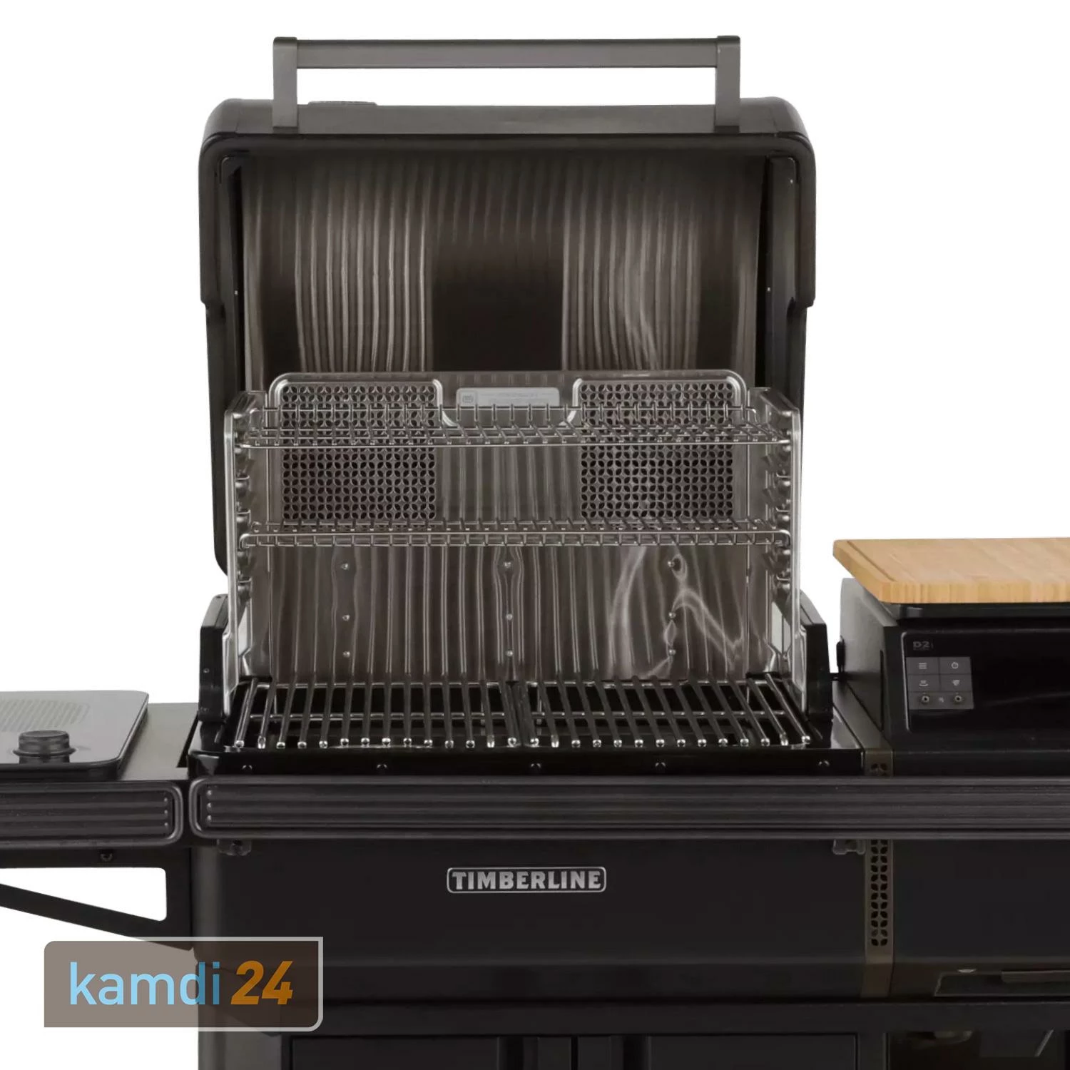Mit dem erschienenen bietet einen modernen und für große Feste geeigneten für die Terrasse oder den Garten. Die liegt bei , was Platz für neun Hähnchen, acht Rippchenhalter oder sechs Schweineschultern bietet. Damit kannst du ungefähr . Das Grillgut lässt sich dabei auf drei verschiedenen Edelstahl- verteilen. Der Timberline vereint die Funktionen eines Pelletgrills und eines in einem Gerät und erinnert mit dem komfortablen , den und dem an eine . Mit diesem Grill kannst du deine Gerichte sowohl nach der Low & Slow-Methode langsam als auch ein Steak .