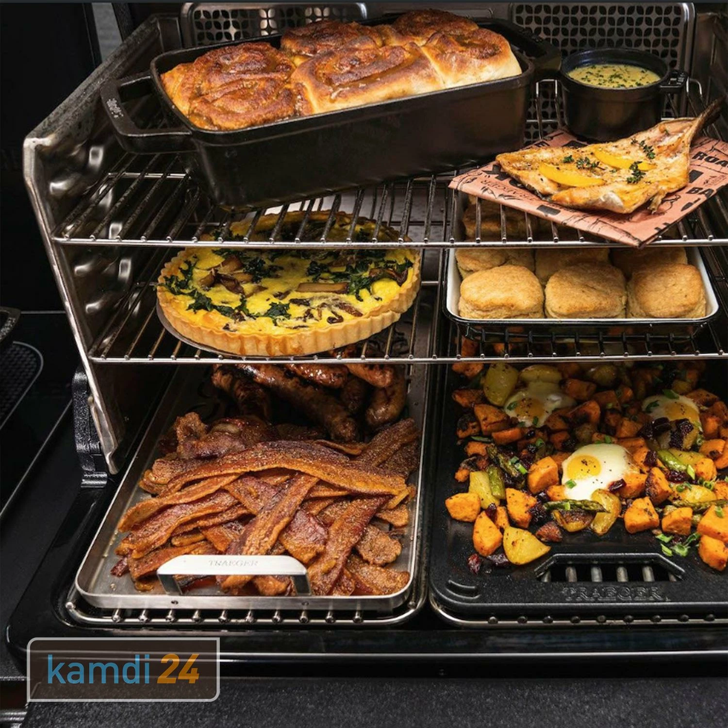 Dank der WiFire-Technologie von Traeger und den hast du deinen auch aus der Ferne unter Kontrolle; du kannst die Grilltemperatur mithilfe der Traeger-App steuern und überwachen; ein Countdown zeigt dir den Fortschritt deines Grillguts an. In der App sind über 1.600 Rezepte und Grillanleitungen für dich hinterlegt, sodass dir nie langweilig wird. Außerdem hast du die Möglichkeit, einen Timer oder einen Alarm über deine Stimme mit Alexa- und Google-Home-Geräten einzustellen und zu steuern.