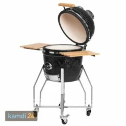 Der Grillkörper ist aus hochwertiger Keramik gefertigt. Diese wird mit Quarz und Cordierit veredelt und im Hochofen gebrannt. Alle Metallkomponenten, auch der Rauchabzug, sind aus rostfreiem 304er Edelstahl gefertigt. Zudem lässt sich der Grill leicht reinigen.
